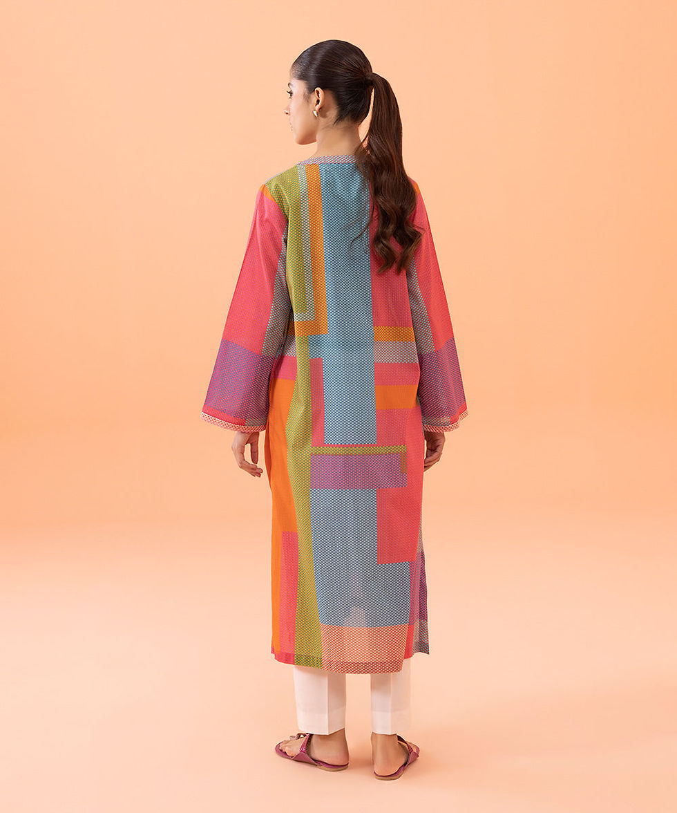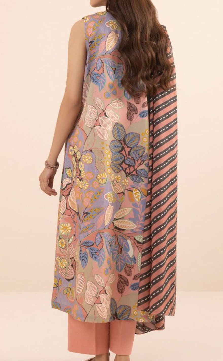 Boho patchwork style 2-pc printed lawn suit | Pink pants
